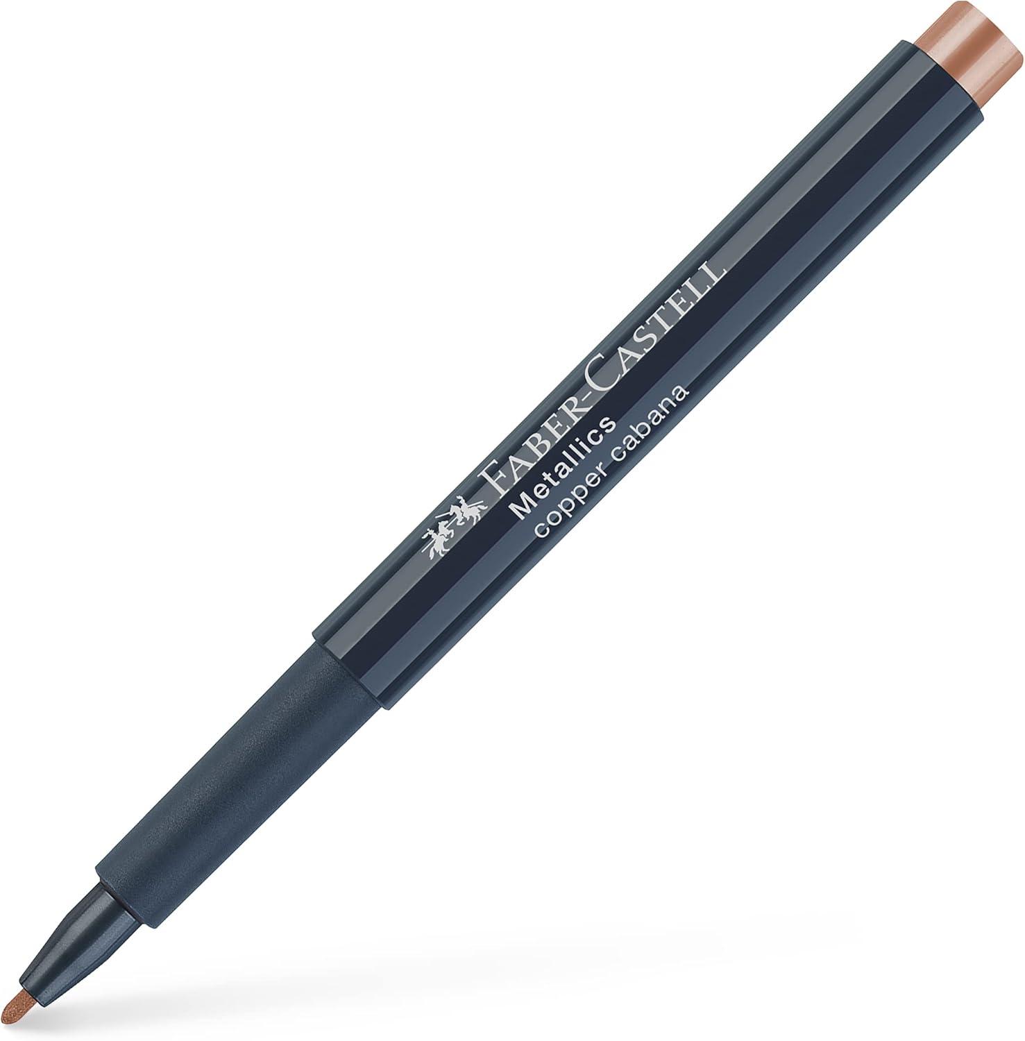 Faber-Castell Metallics Marker Colour 252 Copper Cabana provides vibrant metallic copper ink for writing, drawing, and decorating. Its smooth tip allows precise and even application on various surfaces.