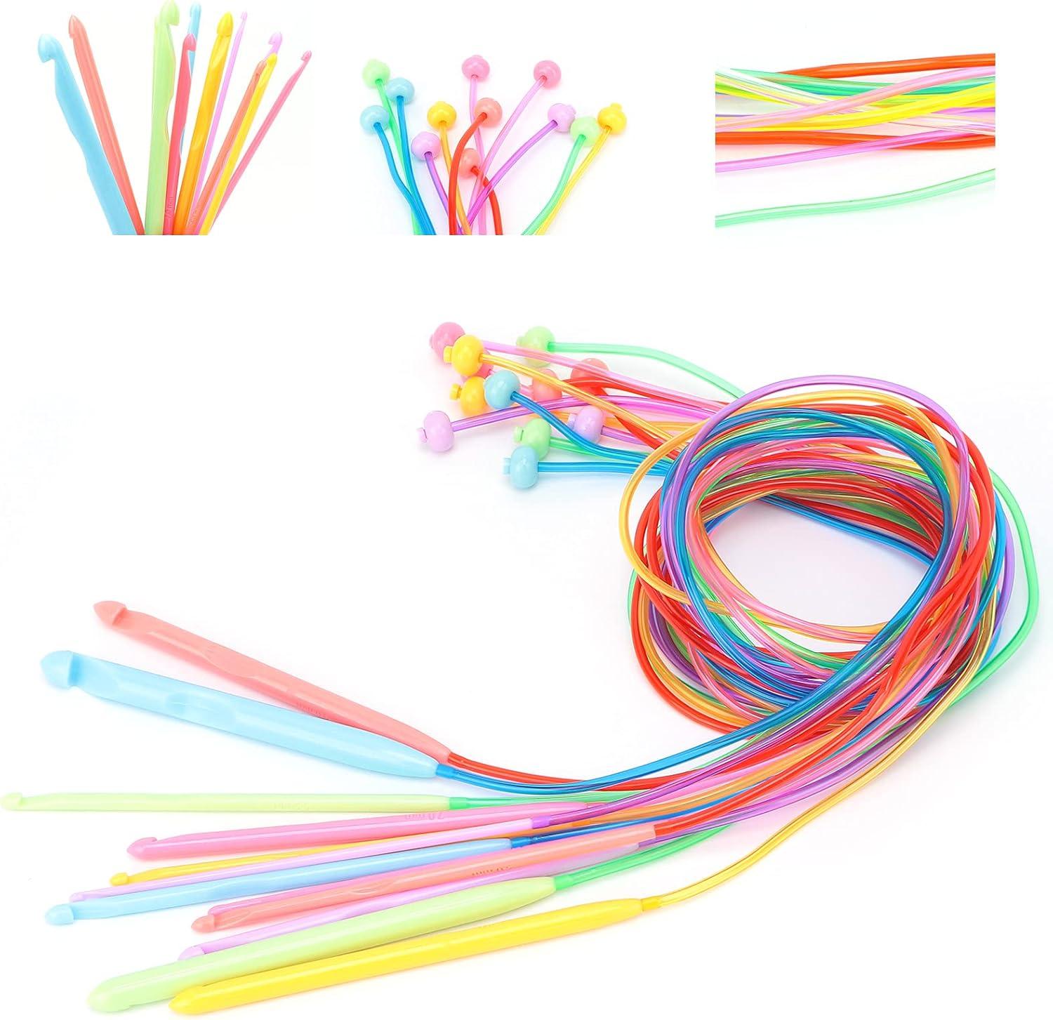 Type: Afghan Crochet Hook. Length: 120 cm. Handle: Colored plastic. Cable: Flexible plastic with bead stopper. Sizes: 3 mm, 5 mm, 9 mm, 10 mm. Use: Sweaters, blankets, large crochet projects.