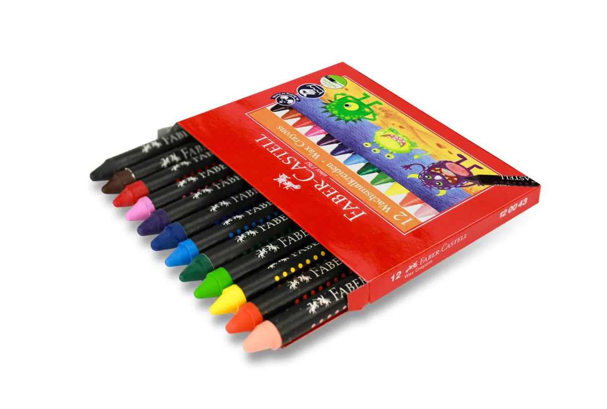 أقلام شمع فابر كاستل 12 لون توفر 12 لوناً زاهياً للرسم والتلوين. تتميز الأقلام بملمس ناعم لتطبيق سهل ومناسبة للمشاريع الإبداعية للأطفال والكبار.