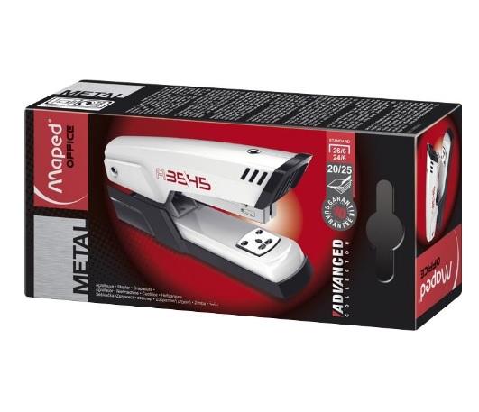 دباسة معدنية عالية الجودة من مجموعة Advanced من Maped. مصممة لراحة الاستخدام وطول العمر، تقوم بتدبيس حتى 25 ورقة باستخدام دبابيس قياسية 24/6 و26/6. مدعومة بـ ضمان 10 سنوات، مما يجعلها خيارًا موثوقًا للمكتب والمدرسة.