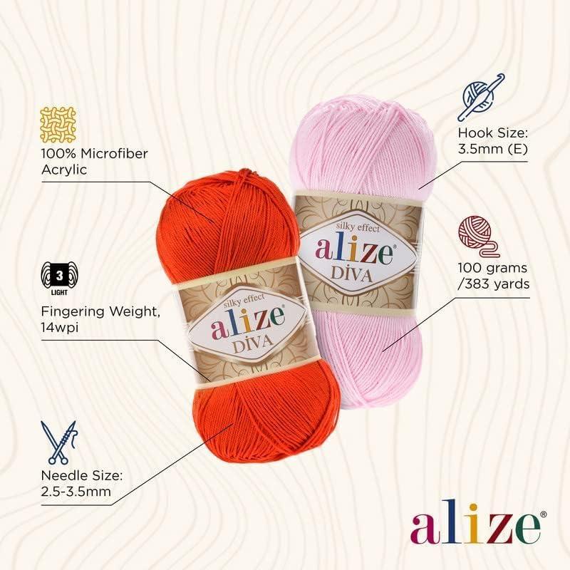 خيط Alize Diva هو خيط ناعم للغاية بملمس حريري مصنوع من ألياف الأكريليك الدقيقة بنسبة 100%، مثالي لصناعة الملابس والإكسسوارات الصيفية الخفيفة والمريحة. يتميز بنعومته العالية ولمعانه الهادئ، بالإضافة إلى مجموعة واسعة من الألوان الزاهية. هذا الخيط التركي مناسب للحياكة والكروشيه، ويُستخدم في صناعة البلوزات، الفساتين، الشالات، وقطع الأطفال. يوفر Alize Diva مزيجًا رائعًا من الأناقة والمتانة والراحة في كل غرزة.