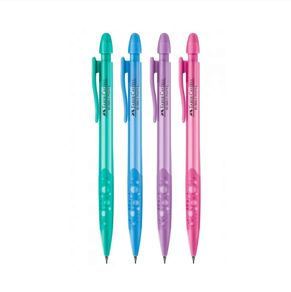 Faber-Castell Bubble Mechanical Pencil 0.5 mm features a fun design with a comfortable grip for everyday writing. It uses 0.5 mm leads and comes with an eraser under the cap. Available in pink, aqua blue, blue, and purple.