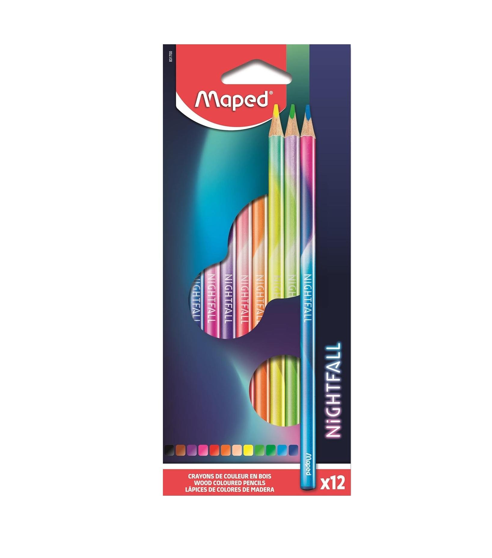 A set of 12 high-quality colored pencils with a stylish Nightfall metallic design. Smooth, vibrant colors for creative drawing and coloring. Made from durable wood for easy sharpening.