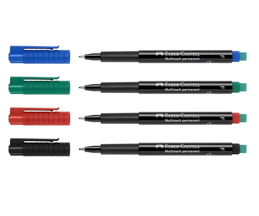 Faber-Castell Multimark Permanent 1513 is a versatile permanent marker suitable for writing and marking on various surfaces. Available in three tip sizes: Super Fine (S), Fine (F), and Medium (M).