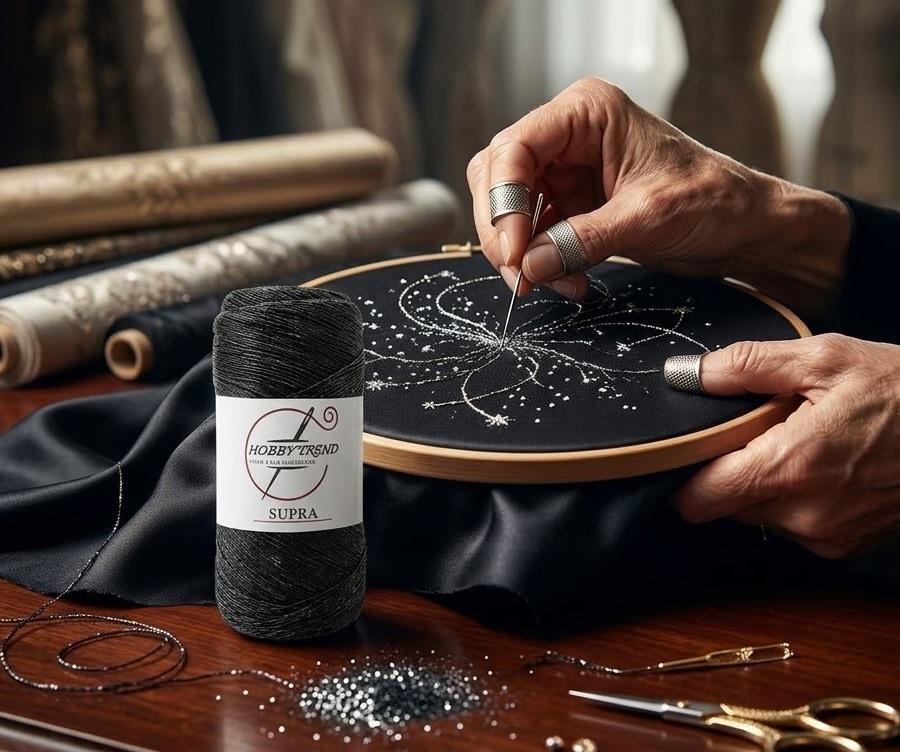 الماكراميه الأسود خالد الأناقة. أضف إليه الجلتر ويصبح لا يُنسى. خيط ماكراميه الجلتر من Hobby Trend باللون الأسود يضيف بريقاً راقياً للوحاتك الجدارية ومعلقات نباتاتك وإكسسواراتك اليدوية — خيط يحول كل مشروع إلى قطعة فنية.