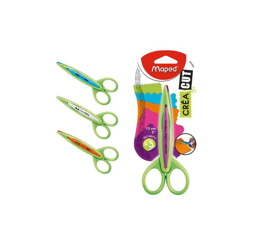 Maped CreaCut Security Scissors 13cm (5") – Safe scissors with special patterned blades for creative cutting. Suitable for children aged 3+, ideal for crafts and school activities.