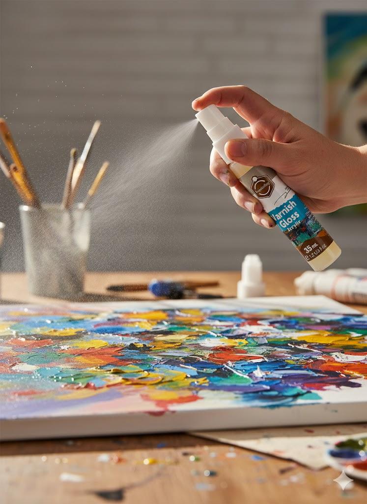 Acrylic varnish gloss, 35 mL (1.2 US fl.oz.). Quick-drying, streak-free, smooth application. Ideal for protecting acrylic, oil, and mixed media artwork.